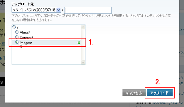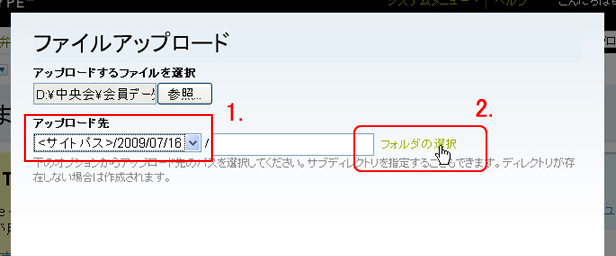 - アップロード先より<サイトパス>日付を選びます