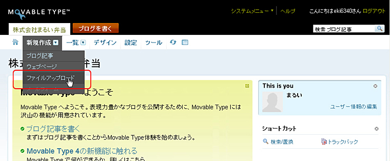 新規作成よりファイルアップロードを選びます