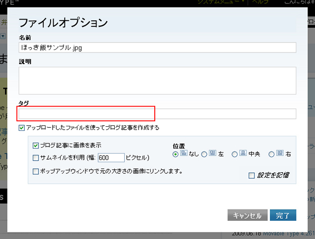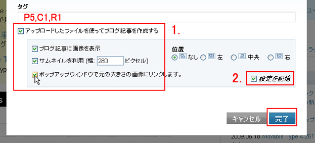 - アップロードしたファイルを使ってブログ記事を作製するにチェック