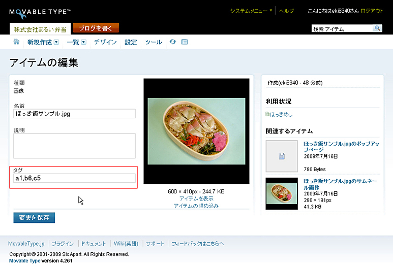 - タグの内容などを修正する場合はここで修正します。