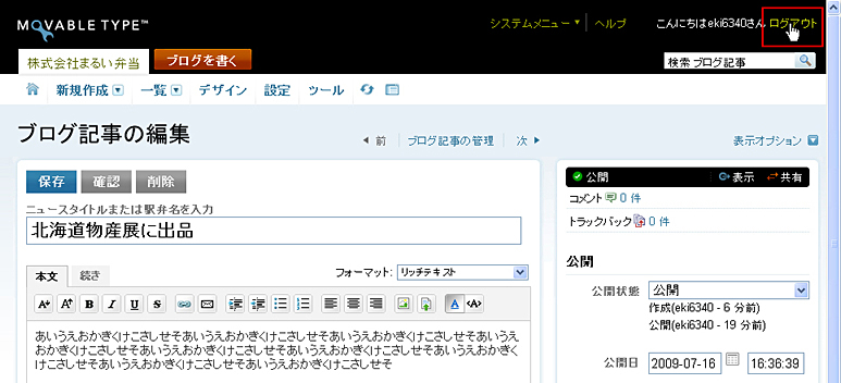 基幹プログラムを会員で共有するシステムとなっていますので、作業が終了したら必ずログアウトをしてください。